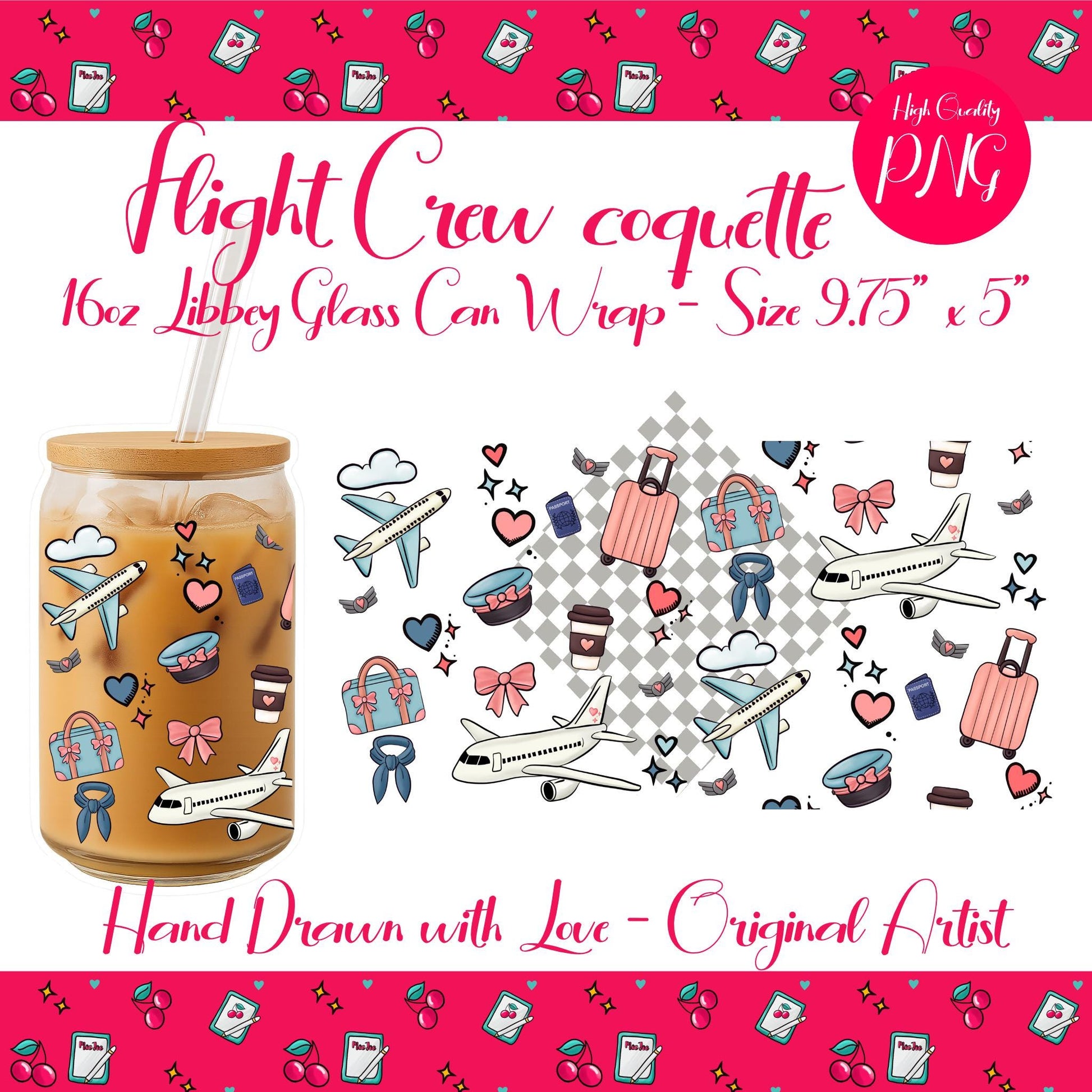 Take your drinkware to new heights with this Flight Crew digital glass wrap design! ✈️☕ Featuring playful aviation-inspired illustrations—airplanes, crew hats, passports, luggage, bows, and coffee cups—this design is perfect for flight attendants, pilots, and anyone who loves to travel.