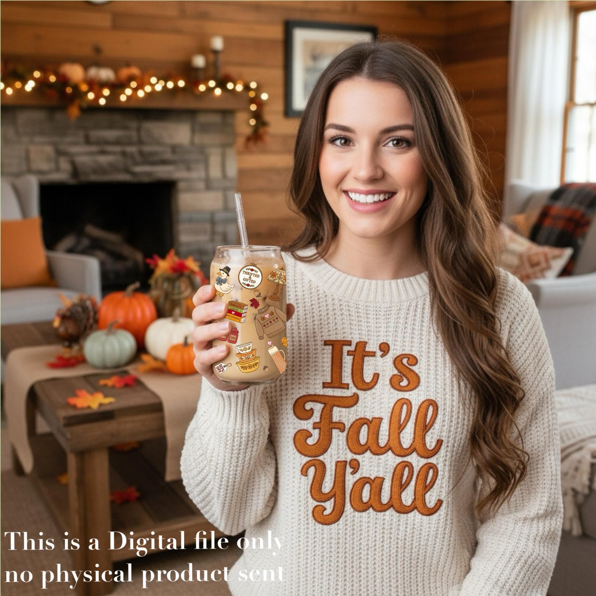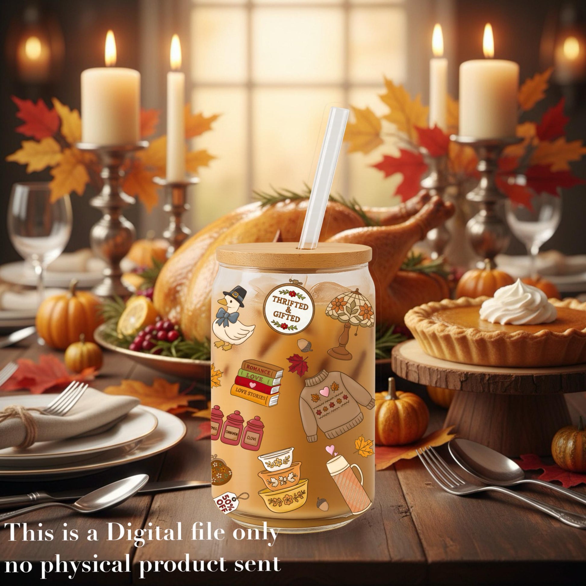 Fall Thrift Shop Glass Can Wrap – 16oz Libbey, Thanksgiving (PNG File)