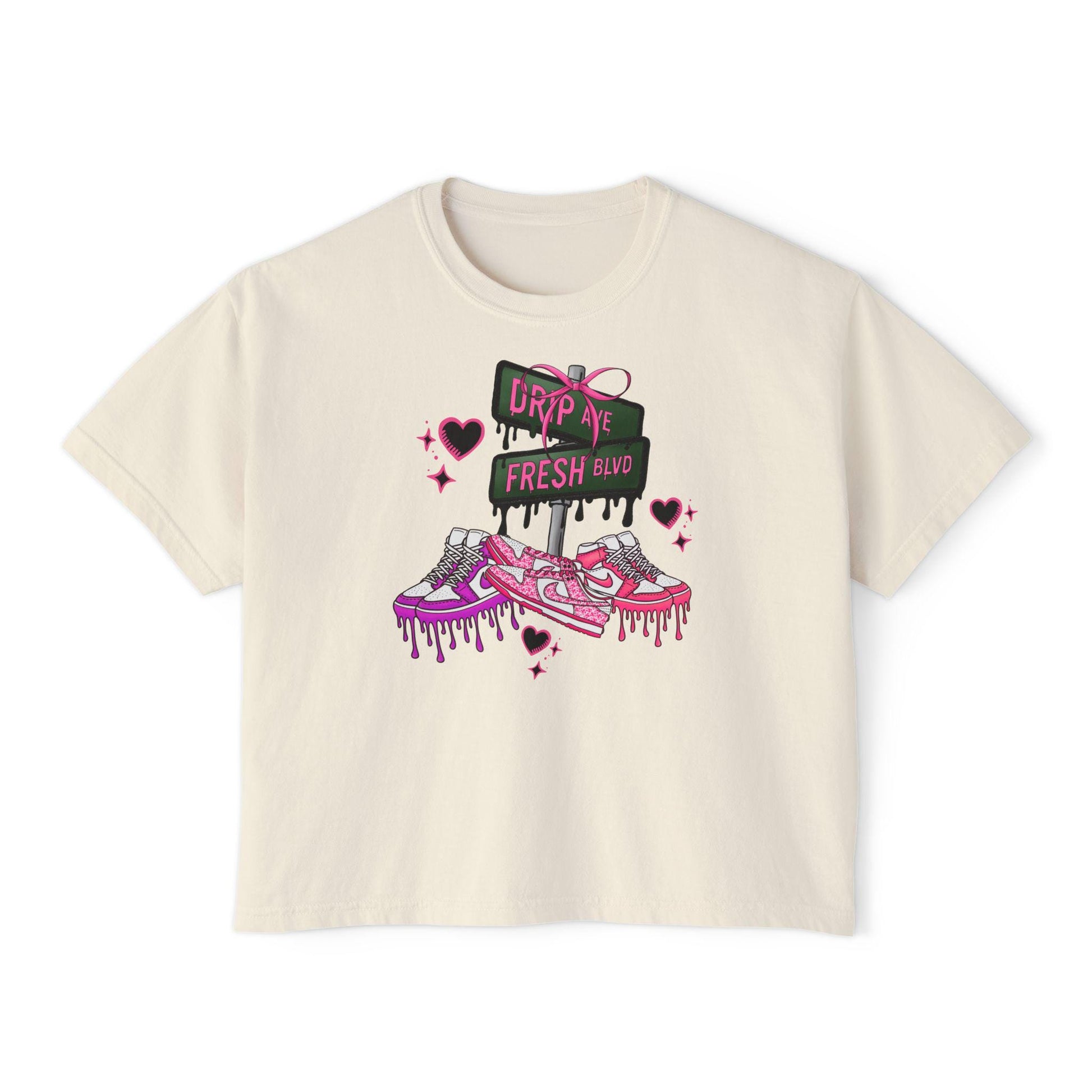 Introducing the perfect blend of pretty and powerful. The pink edition of our bestselling Drip Ave x Fresh Blvd tee features playful dripping letters, a poppin’ pink bow, and a back hit that says what you’re really thinking:
