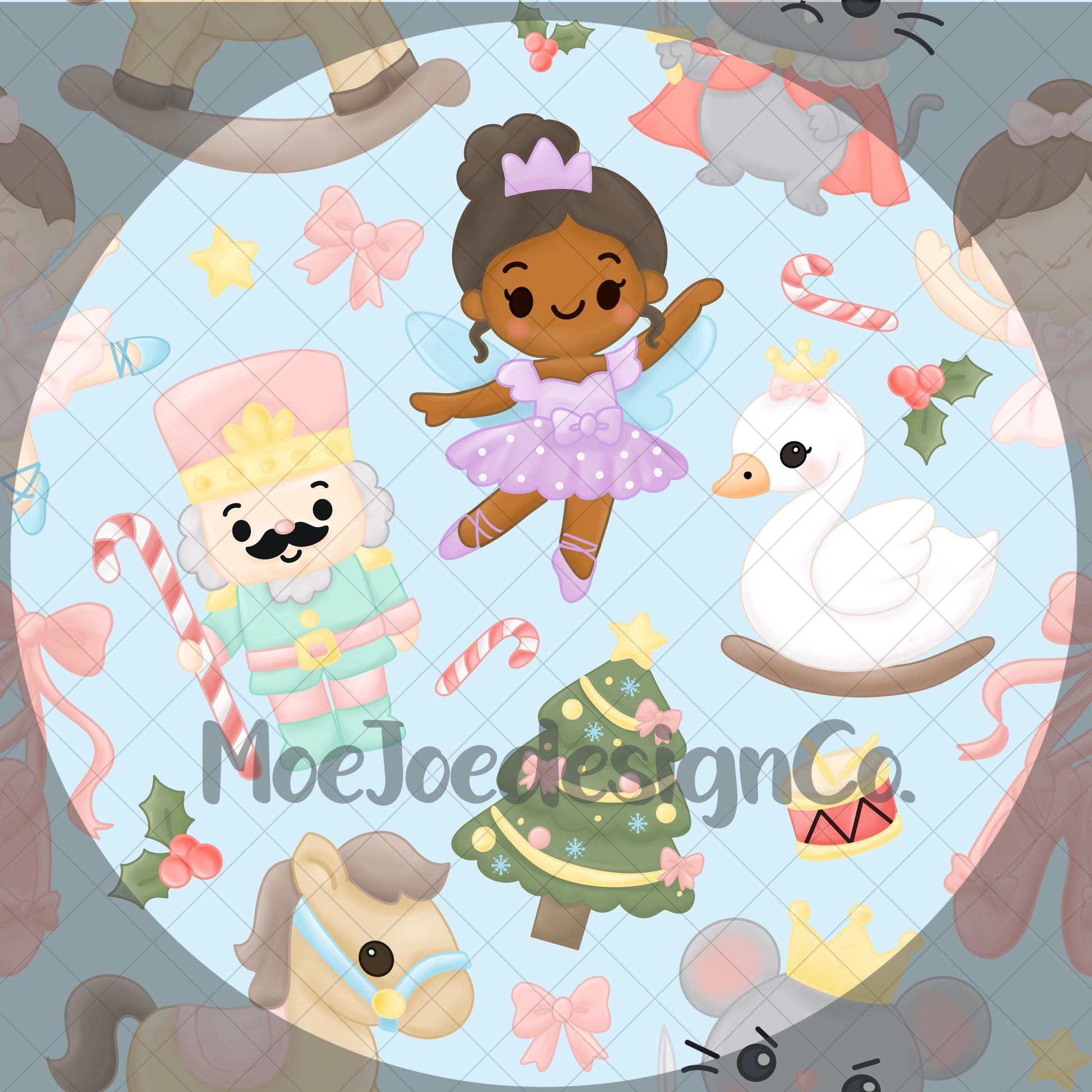 Nutcracker Christmas Seamless Pattern: Ballerina, Candy Cane PNG (Digital Download)