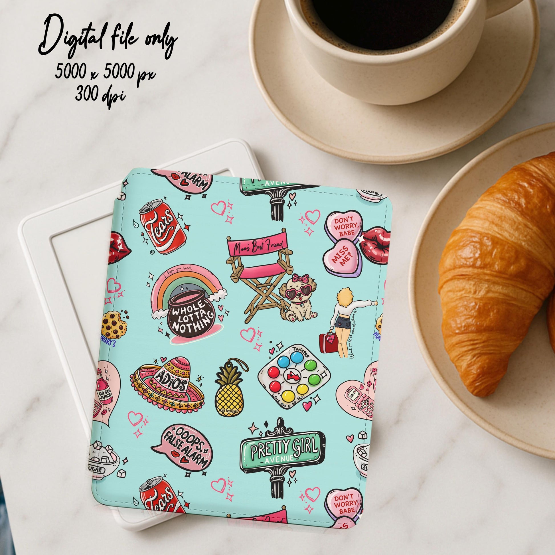 Bring a playful, girly vibe to your next project with this hand-drawn seamless pattern! Inspired by fun, friendship, and a pop of retro sass, this digital paper features original illustrations—think rainbows, sweet treats, and quirky quotes—on three different color backgrounds (dark, pastel yellow, pastel blue) plus a transparent version for ultimate versatility.
