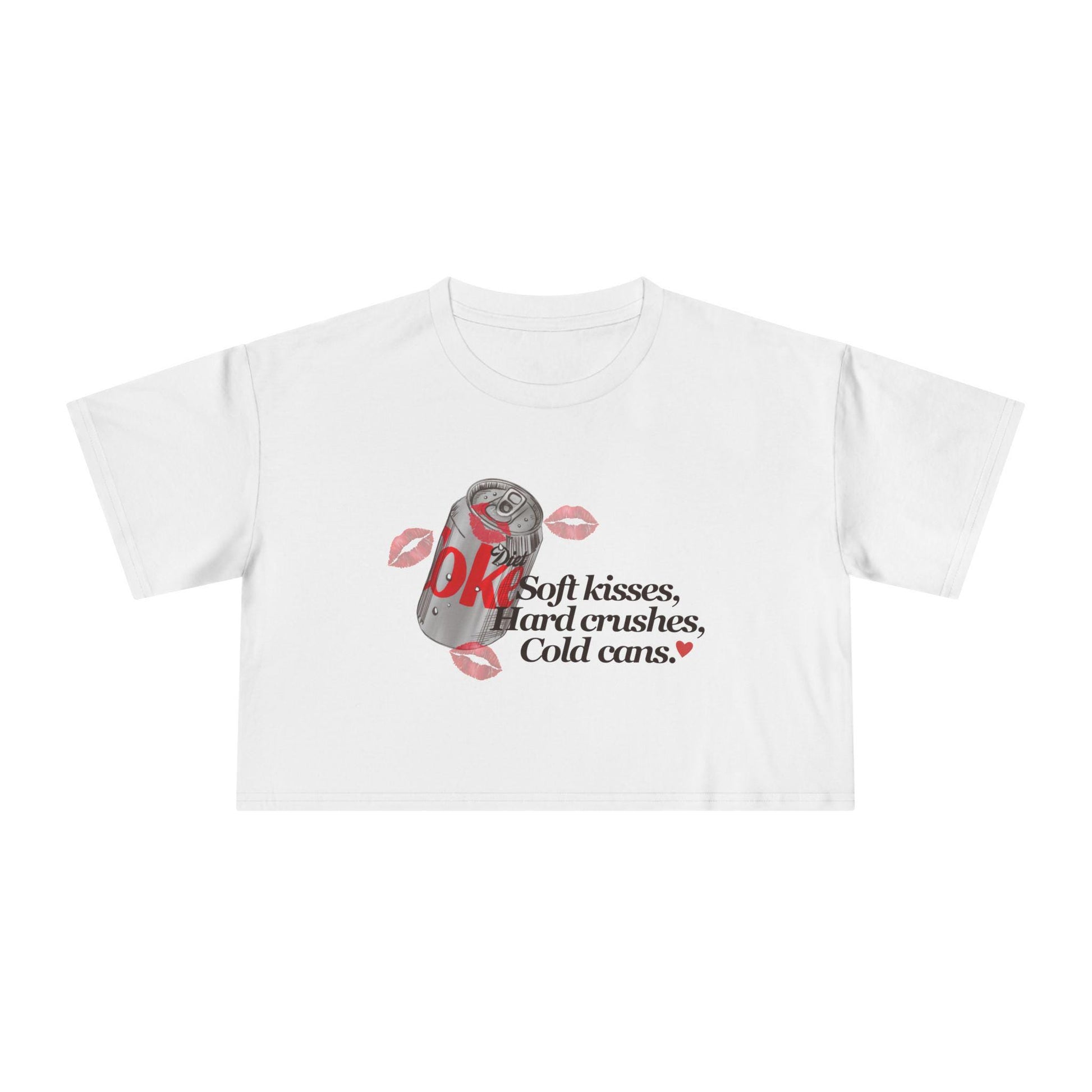 Women's Crop Tee: Soft Kisses Graphic - Casual Summer Fashion