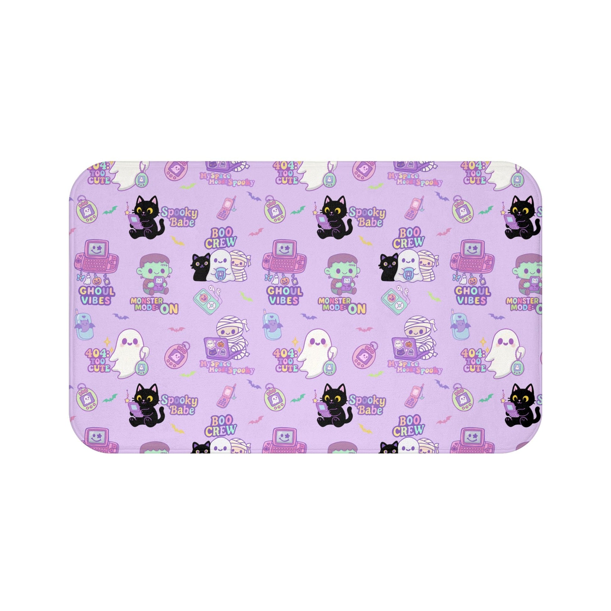 This Pastel Y2K retro tech gameboy sidekick phones frankenstein mummy bath mat adds a fun and nostalgic vibe to your bathroom. Perfect for Y2K enthusiasts and retro tech lovers, this bath mat provides comfort and support to your feet while reducing the risk of slipping. Ideal for anyone looking to add a quirky touch to their bathroom decor.