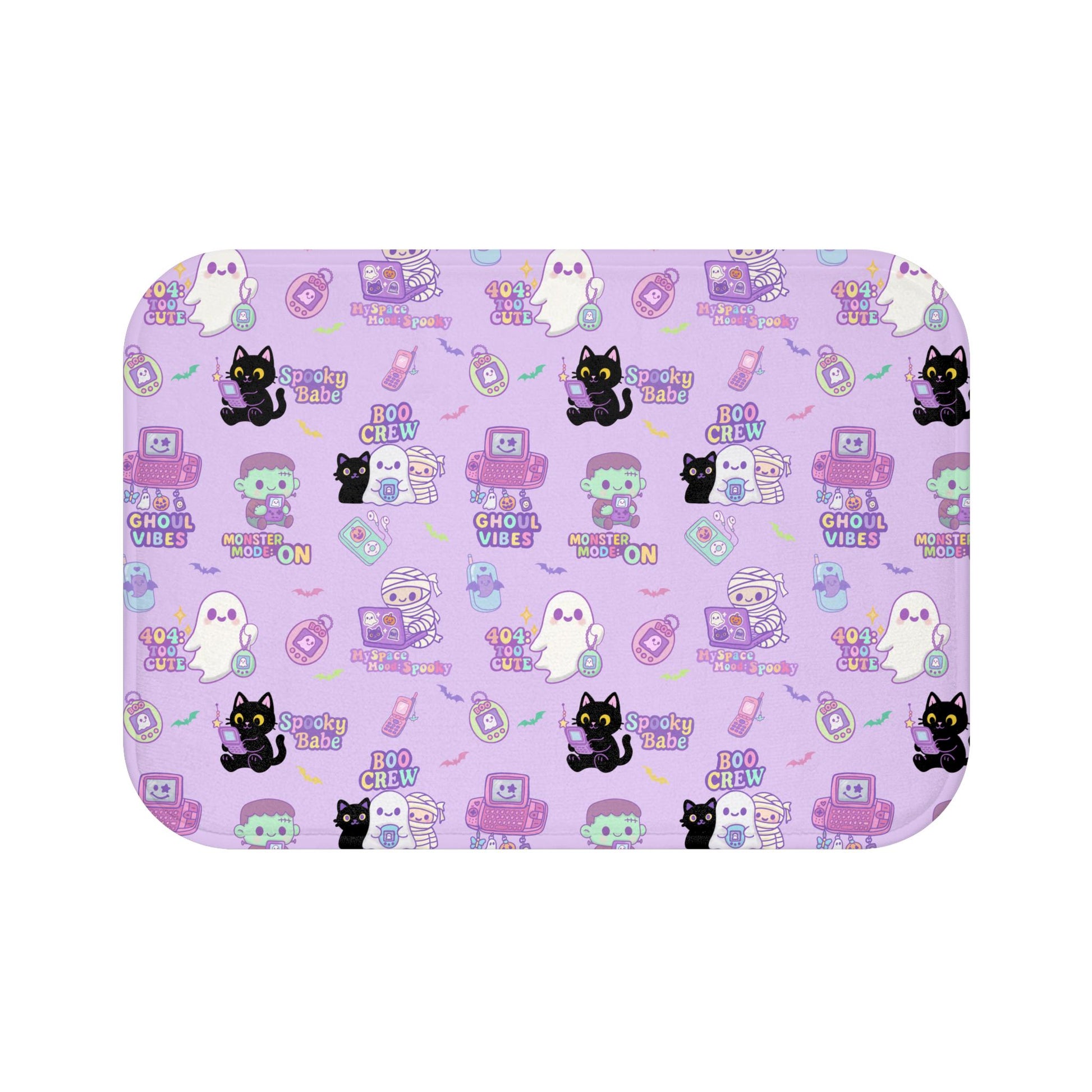 Y2K Gameboy Bath Mat: Pastel Frankenstein Mummy, Non-Slip Memory Foam